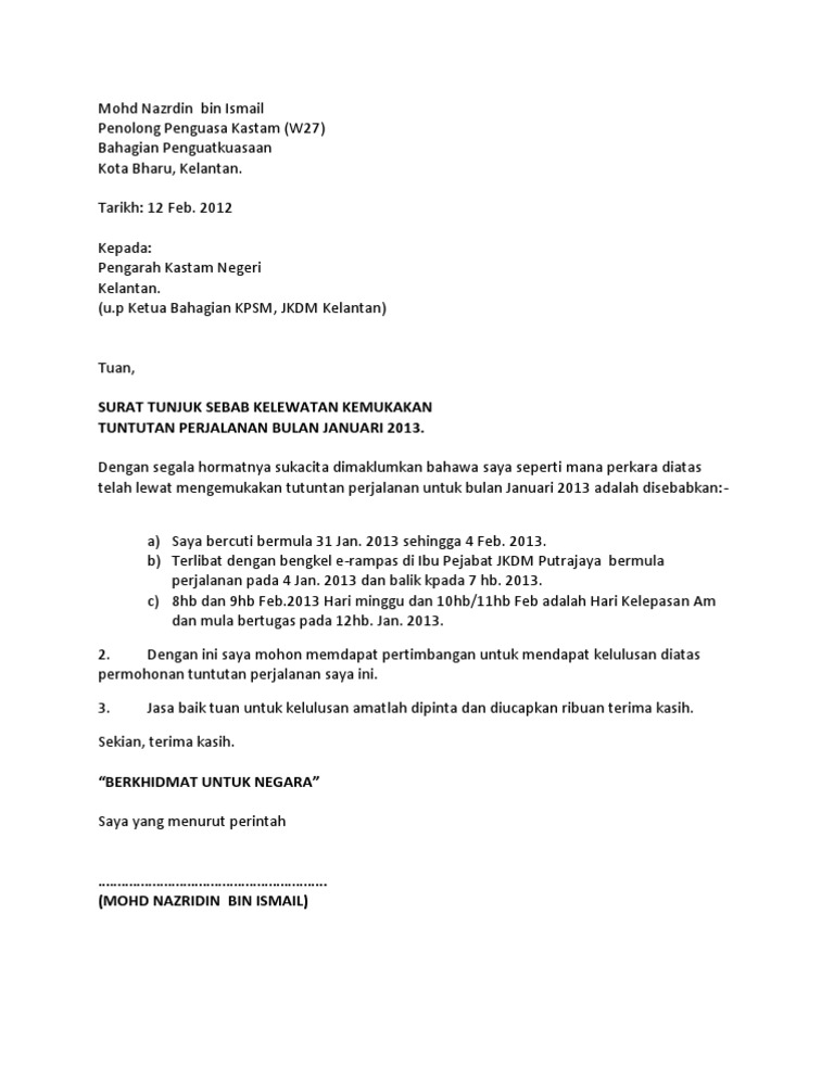 Surat Tunjuk Sebab Lewat Kemukakan Tuntutan Perjalanan Pdf