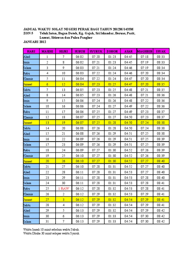 Waktu Solat Perak 2022 1443h 1444h Jakim Tahunan